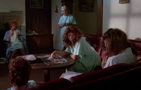 Filmen viser oss innledningsvis en institusjon med såkalte ekte gærninger, men selv om vi forflytter oss til et stor, fint, velmøblert mansion føler jeg etterhvert at det ligner mer og mer på et galehus med psykotiske kvinnfolk med høyt hår.