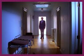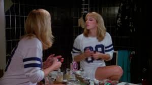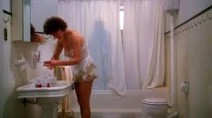 Vi se den første gang hjemme hos en av skuespillerne. Som for øvrig også er en lang merkelig scene, der hun blir overfalt og voldtatt i sin egen seng, men som viser seg å bare være kjæresten hennes som vil spice opp sexlivet. Assa hvem faan tar på seg rouche før de legger seg uansett?