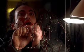 Det tomme blikket og monotone stemmen til Patrick Bateman, som forteller deg hvordan det er å være et menneskekarosseri i American Psycho (1999)