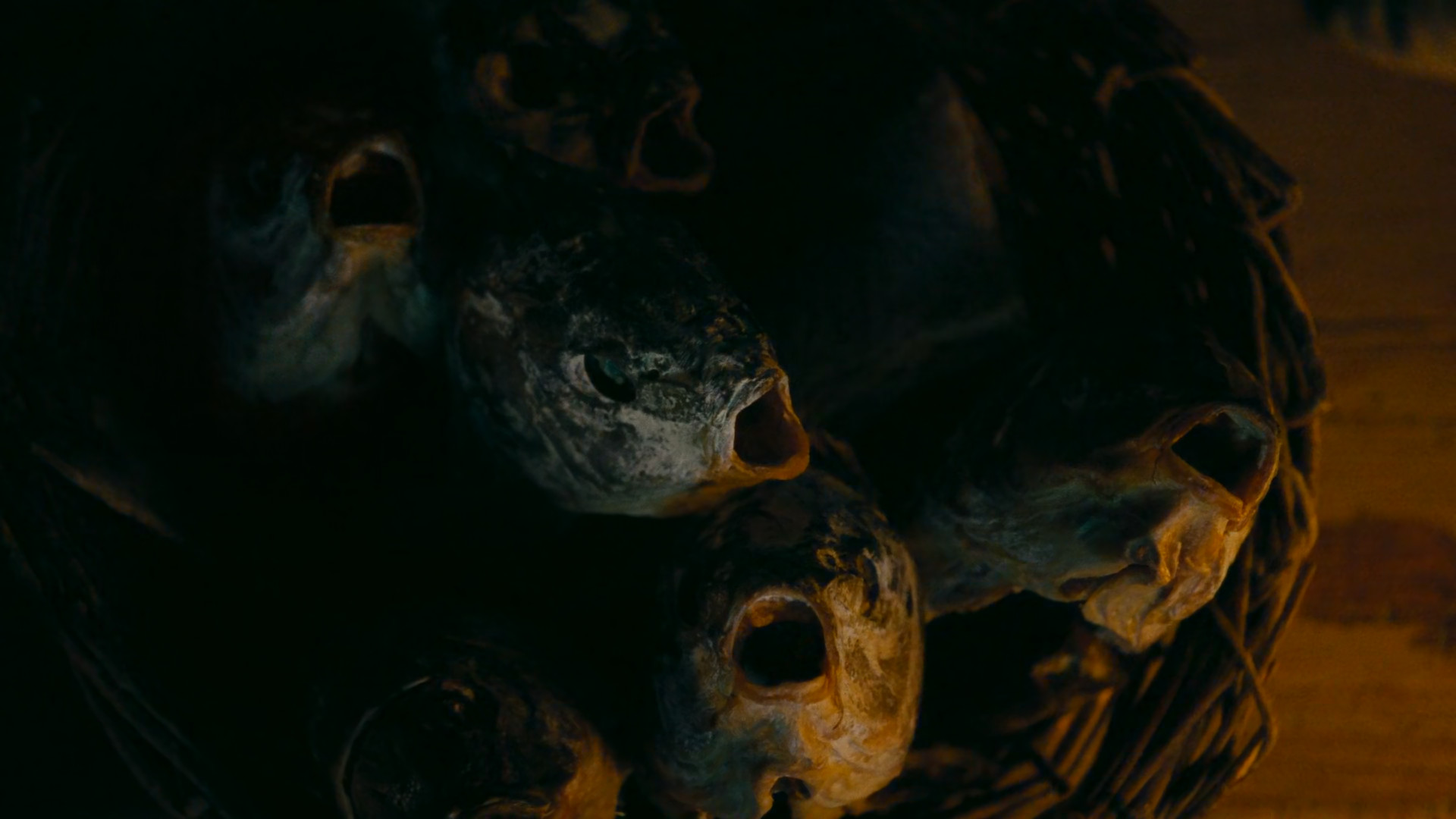 Et avkappet råtnende hode i et bur med øyene på gløtt og aldri har vel fiskehoder som henger over ovnen vært mer skremmende. Tomme anklagende øyne.