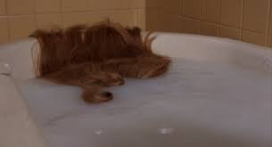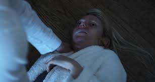 Vi se den første gang hjemme hos en av skuespillerne. Som for øvrig også er en lang merkelig scene, der hun blir overfalt og voldtatt i sin egen seng, men som viser seg å bare være kjæresten hennes som vil spice opp sexlivet. Assa hvem faan tar på seg rouche før de legger seg uansett?