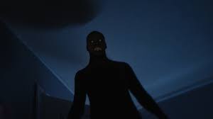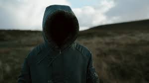 Kameraet viser i neste øyeblikk en svart skikkelsen som står i skogkanten og lurer. Det er personen med masken igjen,- men denne gangen ser vi den i dagslys.
